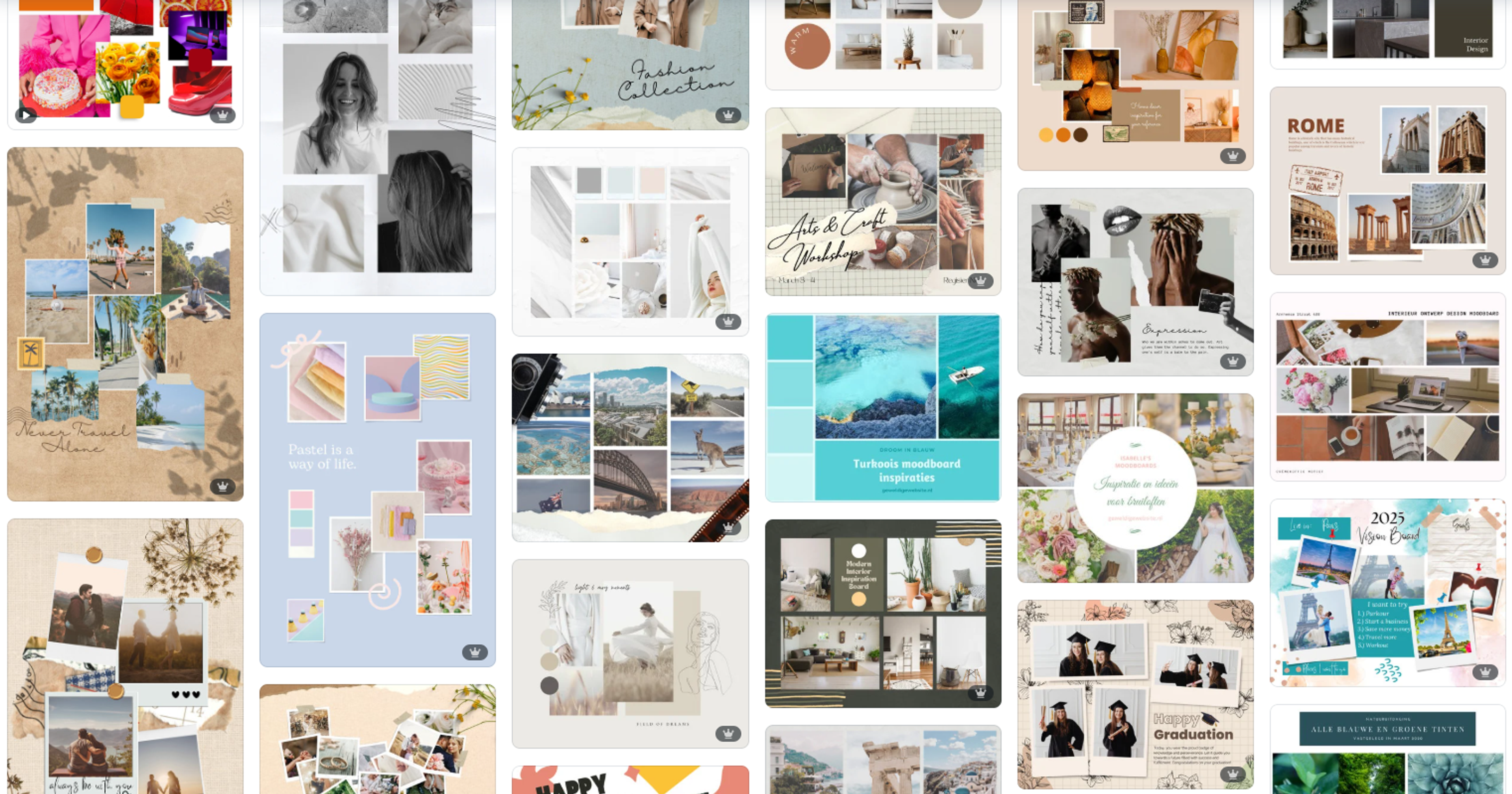 💡 Tip: Met gratis online tools als Pinterest en Canva maak je gemakkelijk moodboards en collages, die je ook kunt delen met teamgenoten om samen aan te werken. Digitaal niets voor jou? Je kunt natuurlijk ook gewoon met een stapel tijdschriften en kranten aan de slag!